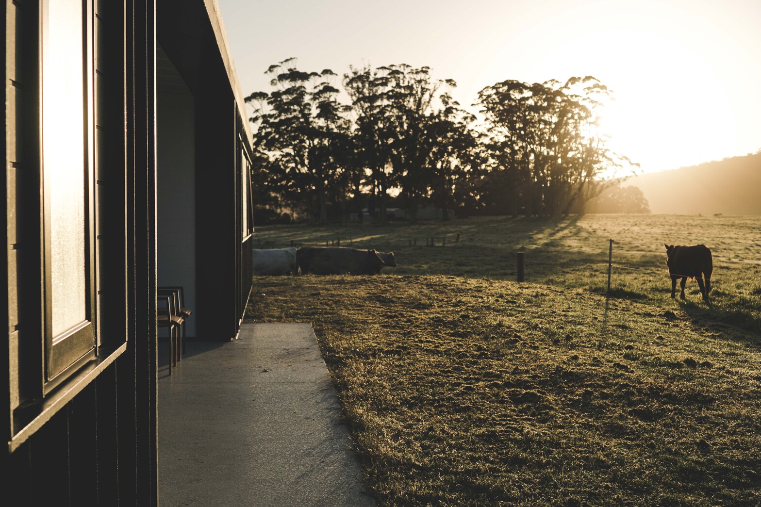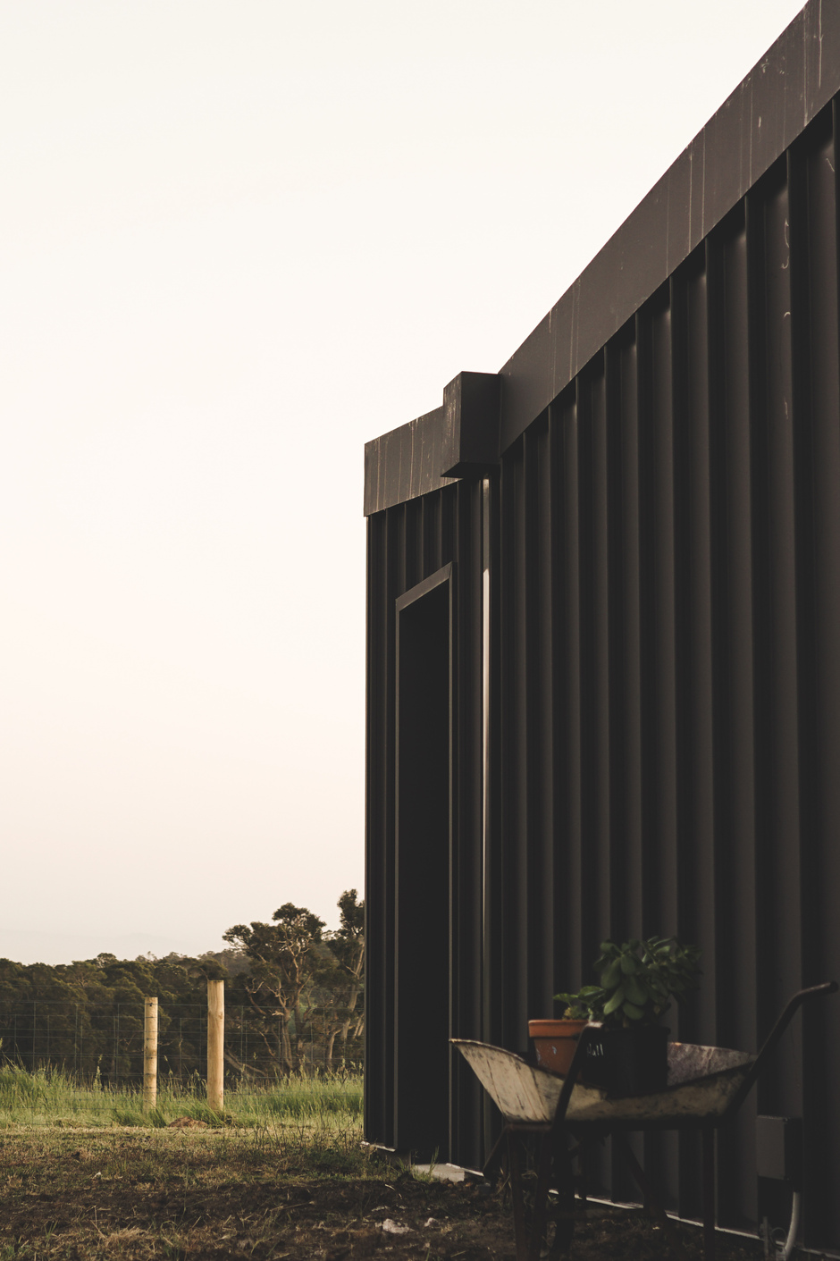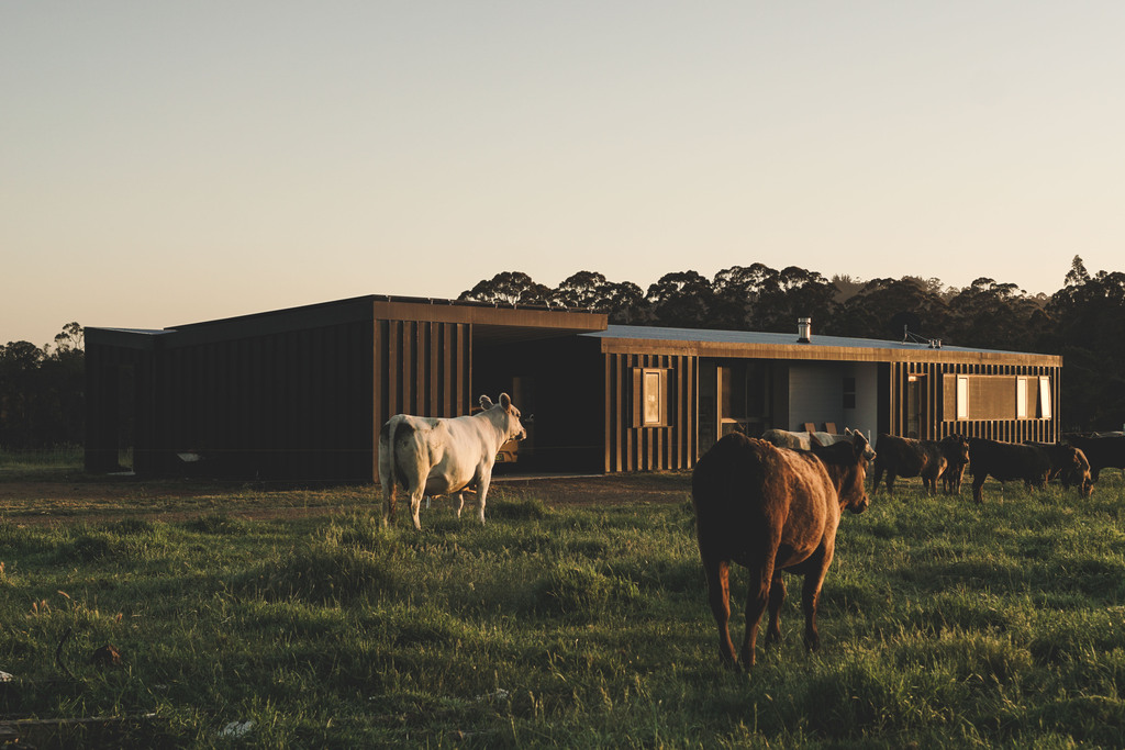 Positioned beside the remnants of the original farm cabin, this off-grid residence is thoughtfully sited to navigate bushfire constraints while capturing expansive northern and southern views. Passive environmental strategies shape the building’s form: northern glazing, extended eaves, and a thermally responsive polished concrete floor ensure stable interior comfort year rOUND. The distinctive hitched roof is designed to admit winter sun while shading the summer heat, and also supports the collection of both solar energy and rainwater, enabling the home to operate entirely self sufficently. A robust, low-maintenance pallet of materials was selected to complement and respond to the demands of the remote, rugged setting.